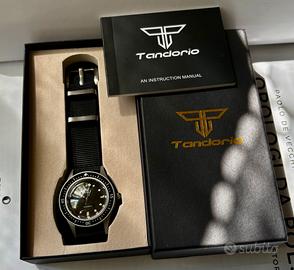 Tandorio Automatico Diver 200. Movimento Seiko NH35 meccanico automatico con possibilità di carica manuale e fermo macchina - Impermeabile 20ATM (200 metri) - dimensioni della cassa 40mm X 14 di spessore - vetro zaffiro - cassa opaca sabbiata - corona e fondello serrati a vite - quadrante no data - cinturino robustissimo in tessuto impermeabile - vendo per esubero di pezzi in collezione - no perditempo