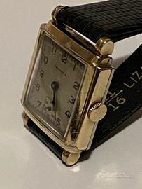 Cedo orologio di forma marca Tavannes art deco anno 1940 da uomo. Orologio perfettamente funzionante ed in condizioni da vetrina. Usato molto poco e ben tenuto. Cassa 28 mm di lato laminata oro .erano le misure degli orologi di que tempi .con fondello di chiusura acciaio.quadrante originale scritta swisse sotto il sub quadrantino dei minuti a ore sei. Correda l’orologio un cinturino di lucertola nero ancora molto godibile.spedisco con corriere di mia fiducia con costi normali. Chi vuole con piuccola aggiunta posso spedire in contrassegno pagando al carriere l’importo. Altri miei annunci su stesso sito.