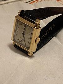 Orologio con cassa di mm 29x28 ben funzionante . Fondello acciaio. Anni 30/40 segni normali di utilizzo , ancora molto godibile sia per uomo che per donna . Spedisco con corriere di mia preferenza con costi mon compresi bel prezzo dell’orologio. Non uso tutto subito. Non accetto restituzione . Precedenza al ritiro in zona con pagamento .