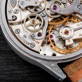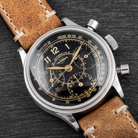 Tavannes Cronografo Ermetico. Galvanico. Gilt. 38 mm. Perizia tecnica allegata. Orologio storico del marchio Tavannes Watch Co., fondato nel 1891 in Svizzera. Questo modello incarna l’eleganza dell’orologeria meccanica tradizionale: movimento a carica manuale, cronografo d’epoca (anni ’40-’50) con design autentico. Un pezzo da collezione per gli amanti del vintage, con carattere e storia.” Il marchio Tavannes, fondato nel 1891 da Henri-Frédéric Sandoz, è uno dei nomi storici dell’orologeria svizzera. Negli anni ’30-’50 produsse orologi tecnici di grande qualità, spesso equipaggiati con movimenti Venus e Landeron. Questo cronografo, con il suo quadrante “gilt” a forte contrasto e il movimento Venus, rappresenta uno dei modelli più affascinanti del periodo pre-moderno. Questo modello incarna l’eleganza dell’orologeria meccanica tradizionale: movimento a carica manuale, cronografo d’epoca, con design autentico. Un pezzo da collezione per gli amanti del vintage, con carattere e storia.
