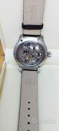 Movimento: Svizzero a carica manuale Eta/Unitas 6497, visibile attraverso il fondello trasparente decorato. Un movimento leggendario per robustezza.
