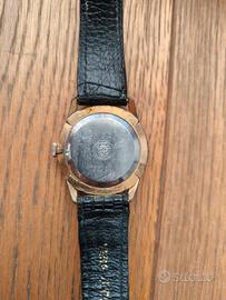 Technos con cinturino in pelle vera di lucertola nero, 21 rubini con datario ore 3 e lancetta secondi ore 6.