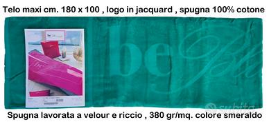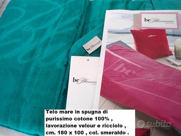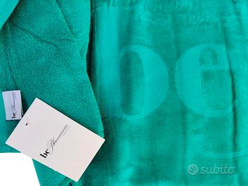 Telo mare , barca, piscina sauna bagno ecc. , Nuovo originale . Spugna purissimo cotone 100% con lavorazione velour e ricciolo , logo jacquard , colore smeraldo . Prodotto di eccellente qualità e manifattura , confezione in busta logata .