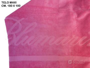 Proponiamo in offerta telo spugna Blumarine nuovo originale . Misure maxi cm. 180 x 100 , spugna purissimo cotone 100% con lavorazione velour e ricciolo , confezione in busta logata . Prodotto di eccellente qualità e manifattura .