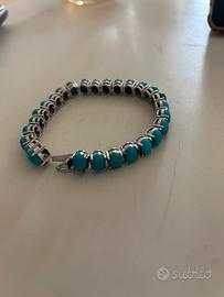Bellissimo bracciale artigianale realizzato a mano in India, in argento 925 massiccio, con turchesi naturali ovali incastonati singolarmente.