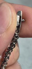 Splendido e robusto tennis in argento 925 Come si vede dalla foto necessità solo di una lucidata con apposito panno per il resto è perfetto e bellissimo oltre che lucente. Misura 19cm quindi perfetto sia per lei che per lui Possibile spedizione o consegna a mano