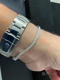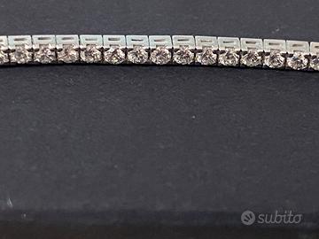 Vendo tennis nuovo mai indossato, in oro bianco oro 18 kt pesa grammi 9,5 circa, con diamanti taglio brillante ct 2,70 colore G purezza Vs2. Lunghezza cm 19.