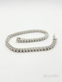 Bracciale tennis in oro bianco 18 kt ( 750 ‰ ) di grammi 13.00 impreziosito da diamanti naturali forma tonda e taglio a brillante di ct 5.10 totali; purezza VVS colore G.