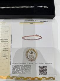 Bracciale tennis in vendita con certificato AGI. Tutte le informazioni e le specifiche tecniche del gioiello sono riportate nel certificato ufficiale. Il bracciale nasce in oro rosa ed è stato successivamente rodiato in oro bianco.