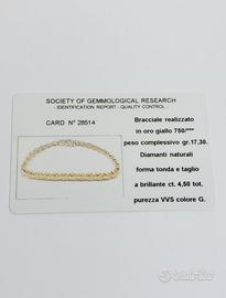 Bracciale in oro 18 kt ( 750 ‰ ) di gr. 17.30 impreziosito da diamanti naturali taglio a brillante per complessivi ct. 4.50 circa purezza VVS colore G.