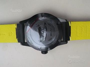 Fondello: serrato con viti, impermeabile fino a 5 atmosfere e medaglione in titanio applicato alla cassa con sagoma dell'idrovolante MC 72