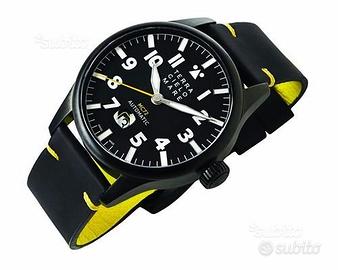 New look per l'Aviatore MK-II di TCM novità Basilea con omega rolex panerai audemars piguet eberhard patek zenit iwc universal jaeger breitling tudor heuer seiko tudor, declinato ora nella versione Tropical che presenta le stesse caratteristiche tecniche dei suoi predecessori, ma cambia il cinturino che è realizzato in una fibra sintetica sperimentale, chiamata Microgummy, con ottime doti di resistenza e impermeabilità, oltra ad avere un piacevole effetto gommato al tatto. All'apparenza ricorda il caucciù ma è molto più resistente. L'impuntura colorata richiama nel colore alcuni dettagli del quadrante. In questo caso è gialla come la lancetta centrale dei secondi, il profilo della finestrella della data al 6 e il nome del modello; anche il retro del cinturino è completamente giallo. L'orologio è ispirato all'impresa del Maresciallo Agello e del suo idrovolante Macchi Castoldi 72.
