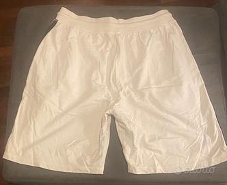 Pantaloncini sportivi bianchi con dettagli a contrasto. - Logo Chicago 83 stampato. - Strisce laterali blu scuro. - Vita elasticizzata con coulisse.