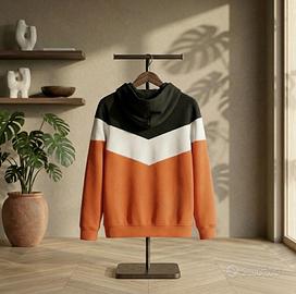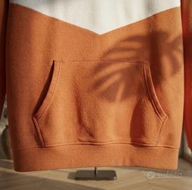 🧥 Felpa con cappuccio Terranova color block, design a chevron, taglia XL. 📐 Taglia XL — lunghezza 73 cm, larghezza ascella-ascella 59 cm, spalle 48 cm. 🎨 Color block arancio bruciato, bianco avorio e nero. 🧵 70% poliestere, 30% cotone, interno garzato fleece, polsini e fondo a coste. ✅ Buono stato. Presente pilling diffuso, lieve sbiadimento del colore e accumulo di pelucchi. 🚚 Spedizione veloce o ritiro a mano a Burago di Molgora 📍 #felpa #cappuccio #colorblock #terranova #xl #hoodie #garzata #usato