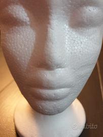 Testa di polistirolo donna per espositore, vetrine, hobby, fiere, per parrucche e bancarelle