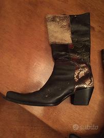 Texani in pelle stampata e pelliccia N.41 Ampia vestibilità
