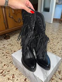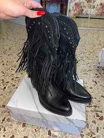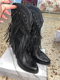 Vendo stivali texani, usati soltanto due volte e praticamente nuovi. Pelle morbida ma struttura ancora sostenuta, nessun segno di usura su tomaia, suola o tacco. Taglia 37, calzata regolare. Scrivimi per foto extra, misure precise della suola o prova dal vivo!