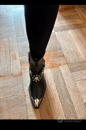 Descrizione Texano mai usato , nuovo pagato 395,00 euro in boutique Punta: A punta Tipo di tacco: Tacco largo Dettagli gambale: Cerniera laterale Chiusura: Cerniera Fantasia: Monocromo vintage Dettagli: Borchie taglia 37 vestibilità stretta