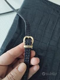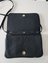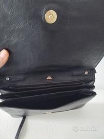 Borsa The Bridge originale vintage in vera pelle nera con elegante lavorazione effetto cocco. Modello compatto e strutturato, con tracolla regolabile e interno a scomparti in pelle multipli, perfetta come borsa quotidiana o da viaggio leggero. ✔️ Pelle di altissima qualità, morbida ma resistente ✔️ Made in Italy ✔️ Chiusura con bottone magnetico ✔️ Interno organizzato con tasca zip ✔️ Hardware dorato con logo The Bridge Condizioni: ottime vintage La pelle è integra e vissuta il giusto, senza difetti strutturali. 💡 Borsa senza tempo, perfetta per look minimal, classici o retrò. 📦 Spedizione veloce