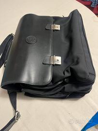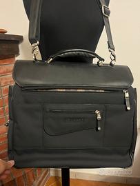 Elegante borsa da lavoro con finiture argentate metalliche e fodera nera a quadri. Dispone di più scomparti con chiusura zip, tasche interne per documenti penne e accessori oltre a tracolla regolabile e manico rinforzato, misura circa centimetri 40 × 30 × 17. usata una sola volta in perfette condizioni generali. Perfetta per laptop, documenti e viaggi personali