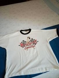 T-Shirt Vintage/Rare THE HELLACOPTERS "Grand Rock" 1999 bianca con risvolti collo/maniche Blu (Taglia L - stampa solo fronte) vedi 2 foto