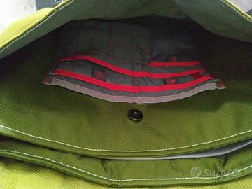 Borsa marchio originale The North Face edizione limitata Ultra Trail du Mont Blanc. Tracolla regolabile, tessuto tecnico impermeabile, colore verde militare, interno con tre scomparti, pratiche tasche e rivestimento leggermente imbottito per computer/tablet. Misure: cm. 44x31, profondità cm. 10. Chiusura con fibbie come da foto. Articolo nuovo, privo di imperfezioni, ottime rifiniture.
