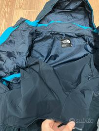 Giacca originale The North Face taglia L, modello a doppia fodera (3 in 1). All'interno è presente un secondo strato che la rende calda e perfetta per inverno e mezza stagione. Per qualsiasi info scrivetemi Colore blu e nero, design sportivo e versatile. Ottime condizioni Nessun buco o strappo Zip perfettamente funzionanti ~ Cappuccio integrato È come avere due giubbotti in uno: ottima sia per uso quotidiano che outdoor.