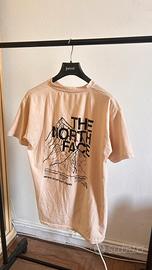 Brand: The North Face Taglia: M Colore: Beige / Sabbia Condizioni: Nuova, mai indossata (senza cartellino) Bellissima t-shirt The North Face originale in una raffinata colorazione beige chiaro. Il capo presenta un design unico: • Fronte: Piccolo logo classico TNF stampato sul petto (lato cuore). • Retro: Grande grafica d'impatto con il profilo delle vette himalayane, incluse le coordinate e i dettagli tecnici dell'Everest Massif, Mt. Lhotse e Mt. Nuptse. • Slogan: Iconico "Never Stop Exploring" stampato sul retro. Tessuto di ottima qualità, 100% cotone, fresco e resistente. Perfetta per il tempo libero o per chi ama lo stile