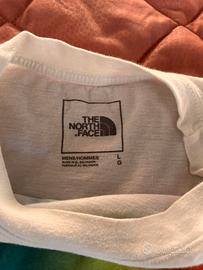 T-shirt originale The North Face, modello con stampa rainbow sul petto e mini logo sul retro. Taglia L uomo, vestibilità regular. Dettagli: • 100% cotone, made in El Salvador • colore bianco (leggermente avorio da vintage, vedi foto) • condizioni buone: stampa integra, nessun buco, nessuna macchia • lavata e pronta da indossare Pezzo perfetto per look streetwear / outdoor, molto ricercato per l'estate.