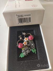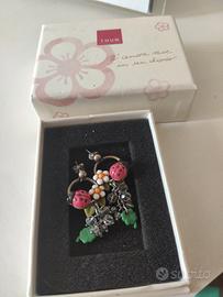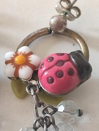 Orecchini Thun originali, in ottone rodiato e zama rodiata, quindi anallergici, con coccinelle e fiori in ceramica. Usato pochissimo