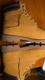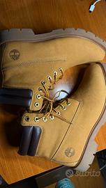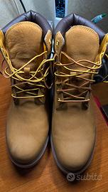 Vendo Timberland 6 Inch Basic Boot colore Wheat Senape, numero 43. Scarponcini iconici, robusti e sempre attuali. Presenti anche scatola originale e foto dettagliate. Le scarpe sono in buone condizioni generali, come da foto. Ideali per stagione autunno/inverno e outfit casual/streetwear.