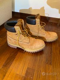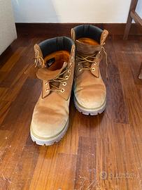 Scarponcini Timberland 6 Inch Waterproof originali, colore wheat, usati in buone condizioni generali. Normali segni d’uso sulla pelle/nabuk, come da foto. Comodi e robusti, ideali per uso quotidiano