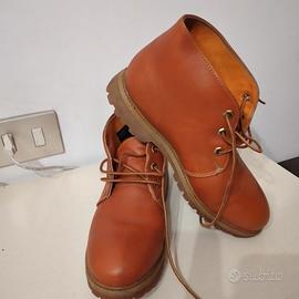 Salve ,vendo Timberland modello Chukka arancioni vintage Unisex Made in USA ,corrispondentea una taglia 36/37 italiana.Scarponcini rari per nostalgici e non dell'epoca paninaro veramente in ottime condizioni se si considerano gli anni che hanno.Spedizione disponibile.
