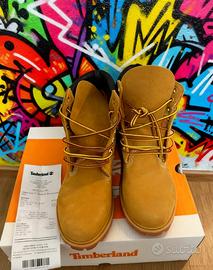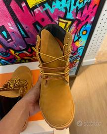 Timberland PREMIUM, classici stivali gialli a gamba larga, unisex. Gli stivali gialli sono di tendenza in questo momento, uno stile grintoso per gli uomini e un look fresco e raffinato per le donne. Perfetti sia per l'abbigliamento casual all'aperto che al chiuso, sono caldi ed eleganti per l'autunno e l'inverno, un tocco di colore brillante. Scarpe nuove di zecca, scatola nuova di zecca, senza danni o macchie. Spedite il giorno successivo all'acquisto.