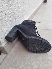 Stivaletto timberland nero con tacco 8cm, indossato 5 volte come visibile da marchio interno e suola non usurate