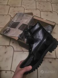 Come da titolo, vendo Timberland unisex nuove originali, in vernice nera com'è possibile visionare in foto, taglia 41.5 (essendo scarpe grandi sono perfettamente indossabili fino ad un 42.5) Non sono mai state indossate, tant'è che sono ancora dotate di etichetta. Il prezzo di listino è di €220, quindi non tratto sul prezzo di vendita di €180.