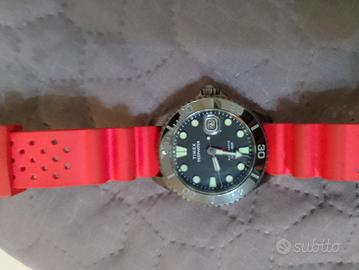 Vendo bellissimo Timex Tiburon Deepwater rosso 200mt, con doppio cinturino ...( rosso e nero), movimento automatico Swiss Made Sellita200-1, perfetto in ogni sua parte, con scatola, controscatola libretto e garanzia, si garantisce e si esige massima serietà, il prodotto è originale.