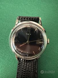 Vendo bellissimo e raro Timex Marlin Hand- Wound TW2T18200, con scatola e controscatola originale, 34 mm e 30 metri di resistenza all'acqua, il fondello sembra sporco ma è la pellicola protettiva.