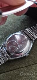 Metto in vendita autentico Timex Q originale d’epoca, uno dei modelli più iconici della fine anni ‘70, qui nella configurazione più ricercata con ghiera Pepsi rosso/blu. ⚠️ NON è il reissue moderno: si tratta di un esemplare originale vintage, con caratteristiche tecniche e fascino completamente diversi. ✨ Caratteristiche principali - Movimento quarzo ibrido elettro-meccanico (non il classico quartz moderno) - Lancetta dei secondi con scorrimento più fluido, tipico dei movimenti di transizione anni ‘70 - Ghiera girevole bidirezionale fluida “Pepsi” (rossa/blu), tra le più desiderate - Quadrante nero con indici luminosi e day-date - Iconico battery hatch sul fondello (apertura rapida per cambio batteria) - Bracciale originale integrato Timex, perfettamente coerente con il modello 🛠️ Condizioni Ottime condizioni generali per l’età Cassa e bracciale ben conservati Quadrante pulito e leggibile Orologio funzionante 💎 Perché è interessante Il Timex Q originale rappresenta un momento storico dell’orologeria: il passaggio tra meccanico e quarzo. Questo movimento “ibrido” è oggi molto apprezzato dagli appassionati perché unisce fascino vintage e tecnologia particolare. 👉 Non è solo un orologio economico: è un pezzo di storia accessibile.