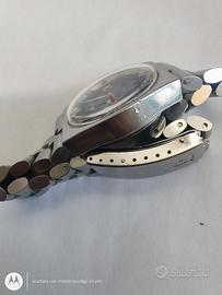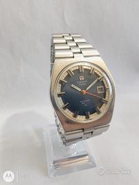 -Orologio in buone condizioni estetiche con segni evidenti di usura e di caduta. Quadrante con Piccoli segni del tempo. -tiene perfettamente il tempo. -Misura cassa esclusa corona: 36mm Cinturino e corona originali -Calibro: Tissot 784-2 Orologio molto raro Per qualsiasi informazione non esitate a contattarmi