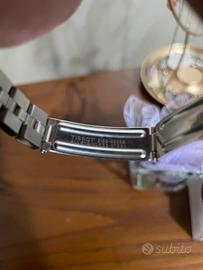 introvabile in queste condizioni penso mai indossato ,orologio veramente bello e raffinato con quadrante in colorazione argento.diametro da 30 compreso la corona,non possiedo la scatola.resto a disposizione per ulteriori foto solo se veramnete interessati.prezzo trattabile.accetto permuta/scambi con orologio o oggetti di mio gradimento.