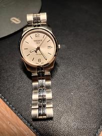 Orologio al quarzo Tissot pr100, quadrante argento, bracciale acciaio inossidabile originale, corona e fondello originali