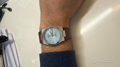 Vendo per rotazione collezione questo Tissot PRX Powermatic 80 (35mm) Automatico perfetto per LUI e per LEI date le perfette dimensioni. Quadrante Ice Blue (Azzurro Ghiaccio) con lavorazione tapisserie: elegante d'inverno, strepitoso sotto il sole estivo. Dettagli dell'esemplare: Acquisto: Febbraio 2025 presso Concessionario Ufficiale Tissot (garanzia ufficiale valida) presente sia la card che lo scontrino di acquisto. Proprietà: Unico proprietario, massima cura, mai lucidato, disponibili le maglie aggiuntive come da foto. Condizioni: L'orologio è originale e mai lucidato, mantenendo gli spigoli vivi di fabbrica. Presenta i normali e leggeri segni di utilizzo derivanti da un utilizzo attento e non quotidiano, avendo ruotato con altri pezzi in collezione. Corredo: Full Set (Scatola, controscatola, manuali e card di garanzia). A parte per chi volesse aggiungere un tocco di personaltà ed eleganza è disponibile il cinturino in pelle originale Tissot specifico per PRX con sistema quick-release preso direttamente dal sito ufficiale al prezzo di 75,00 Euro. Condizioni pari al nuovo, usato pochissimo. Lo cedo a soli 39 Euro. Prezzo Orologio: 475 € Cinturino pelle: 39 € Regole di vendita: Solo scambio a mano su Roma (massima trasparenza, lo vedi e lo provi). No scambi (non rispondo a proposte con Hamilton, Seiko, Citizen, Longines, Tudor, Bulova).