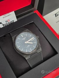 Vendo splendido Tissot PRX Powermatic 80 versione Carbon, acquistato nel 2025. Orologio in condizioni pari al nuovo, mai indossato e quindi senza alcun segno di usura. Cassa e quadrante in carbonio forgiato, molto leggero e dal look sportivo ed esclusivo. Completo di tutto: scatola originale Tissot garanzia documenti Caratteristiche principali: movimento automatico Powermatic 80 (80 ore di riserva di carica) cassa in carbonio forgiato vetro zaffiro impermeabilità 100m Perfetto sia come daily watch che per collezione. Disponibile per consegna a mano oppure spedizione. No perditempo.