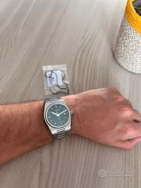 Propongo come da titolo Tissot PRX, nella sua versione con movimeto svizzero al quarzo, 40 mm di diametro cassa e con un bellissimo quadrante di colore verde scuro. L’orologio si presenta in ottime condizioni pur essendo un secondo polso, con lievi hair-lines nella zona della clasp (come da foto) dovuti al regolare utilizzo. L’orologio viene venduto senza scatola originale e senza garanzia. Valuto scambi o permute con altri orologi della stessa fascia di prezzo come seiko citizen orient bulova hamilton ecc. Si preferisce la formula di scambio a mano nella zona e dintorni di Lodi, Piacenza, Cremona o Milano