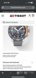 Orologio indossato una decina di volte, perfetto nessun graffio , in garanzia Tissot internazionale 25.7.27 come da registrazione in foto.