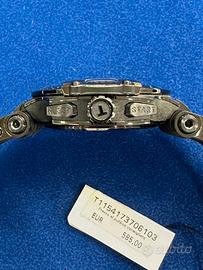 Cassa in acciaio inossidabile PVD nero con cinturino in silicone nero. Lunetta fissa in PVD nero. Quadrante antracite con mani nere luminose e marcatori dell'ora dell'indice. Indicatori dei minuti. segni tachimetrici attorno al bordo esterno. Tipo di quadrante: analogico. Lancette e indici luminescenti. Visualizzazione della data a ore 3. Eta Caliber G10.212 Movimento in quarzo. Vetro zaffiro resistente ai graffi. Fondello solido. Forma della cassa rotonda. Misura cassa: 43 mm. Chiusura ad ardiglione. Resistente all'acqua fino a 100 metri/330 piedi. Funzioni: cronografo, data, ora, minuto, secondo. Serie T-RACE. Stile orologio sportivo. Etichetta dell'orologio: Swiss Made.