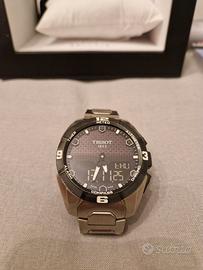 Vendo orologio Tissot T Touch Expert Solar con cinturino completamente in titanio ultraleggero e vetro zaffiro tattile touch screen anti graffio e anti riflesso. Ottime condizioni come da foto, appena revisionato da Tissot con certificato. Disponibile tutta la documentazione originale e scontrino. Funzioni principali: altimetro, misura di dislivello, barometro (pressione), cronometro, sveglia, tempi sul giro, tempi intermedi, bussola, azimut, contaminuti, secondo fuso orario, regata, indicatore giorno e data. Caratteristiche principali: movimento al quarzo, resistente all'acqua 10 atmosfere (100 metri), cassa in titanio da 45 mm, trattamento PVD nero sulla ghiere resistente a usura, quadrante nero effetto carbonio a ricarica solare. Tutte le caratteristiche tecniche complete sono consultabili sul sito Tissot. Posso spedire in tutta Italia con corriere con consegna in 1 giorno lavorativo. Cronografo