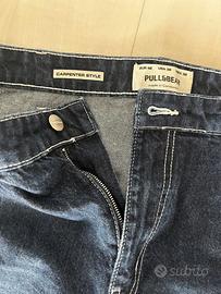 Cerchi un paio di jeans che uniscano robustezza, funzionalità e uno stile distintivo? Mettiamo in vendita questi jeans Pull&Bear in denim scuro, modello Carpenter Style, perfetti per chi ama un look casual ma con un tocco di originalità e praticità.