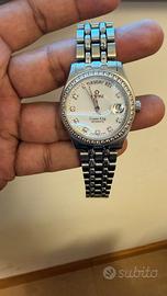 Orologio svizzero di alta qualità, con movimento automatico preciso e affidabile. Il quadrante elegante presenta indici con pietre brillanti e lunetta impreziosita, che donano un tocco distintivo e raffinato.